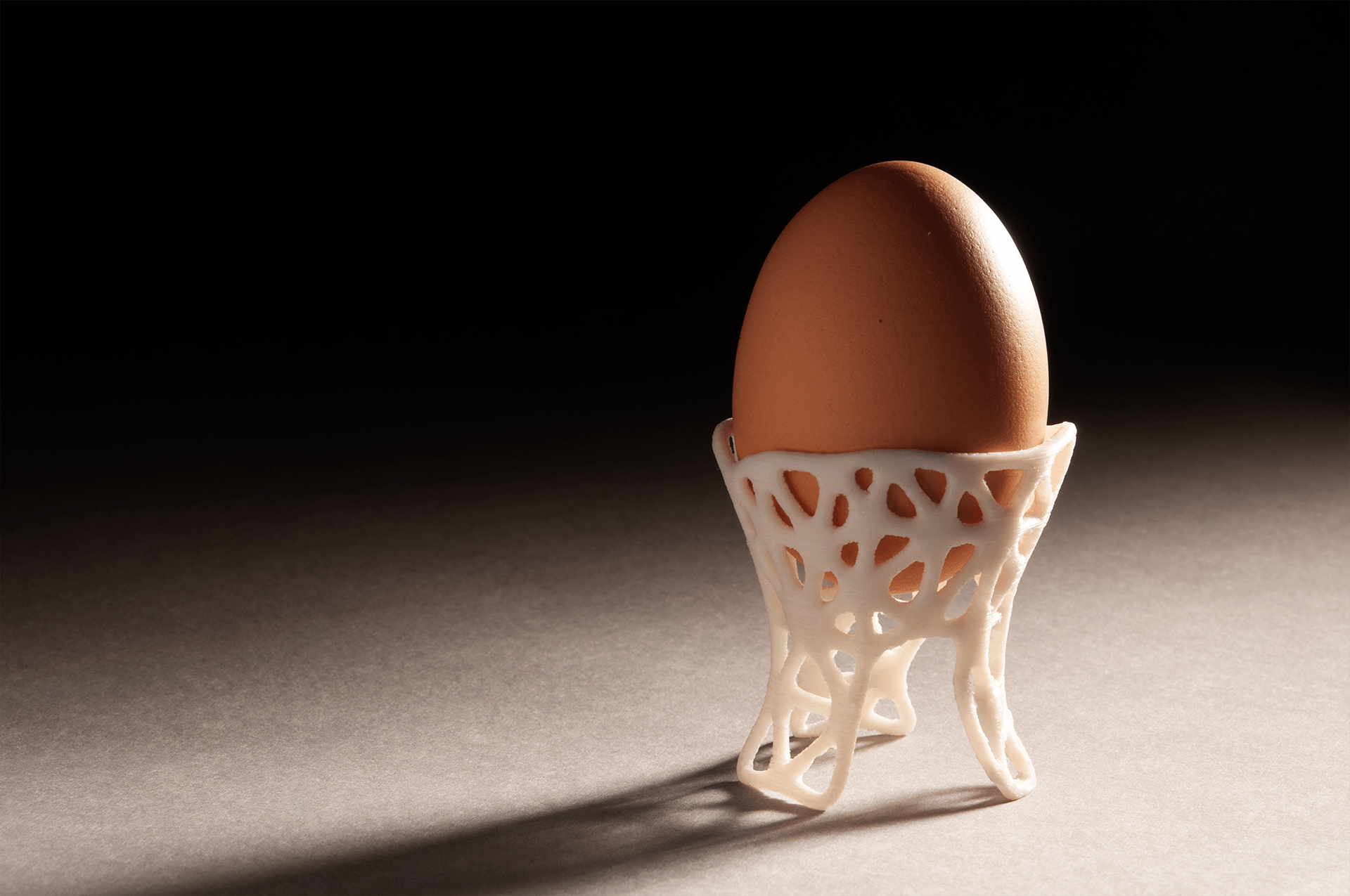 Gregg is a parametric eggcup created with Rhino 3D and Grasshopper. I developed a custom Grasshopper script to generate the design, enabling precise control over its form. The final models were 3D-printed in PLA and PETG, and the eggcup is adaptable to fit different egg sizes.