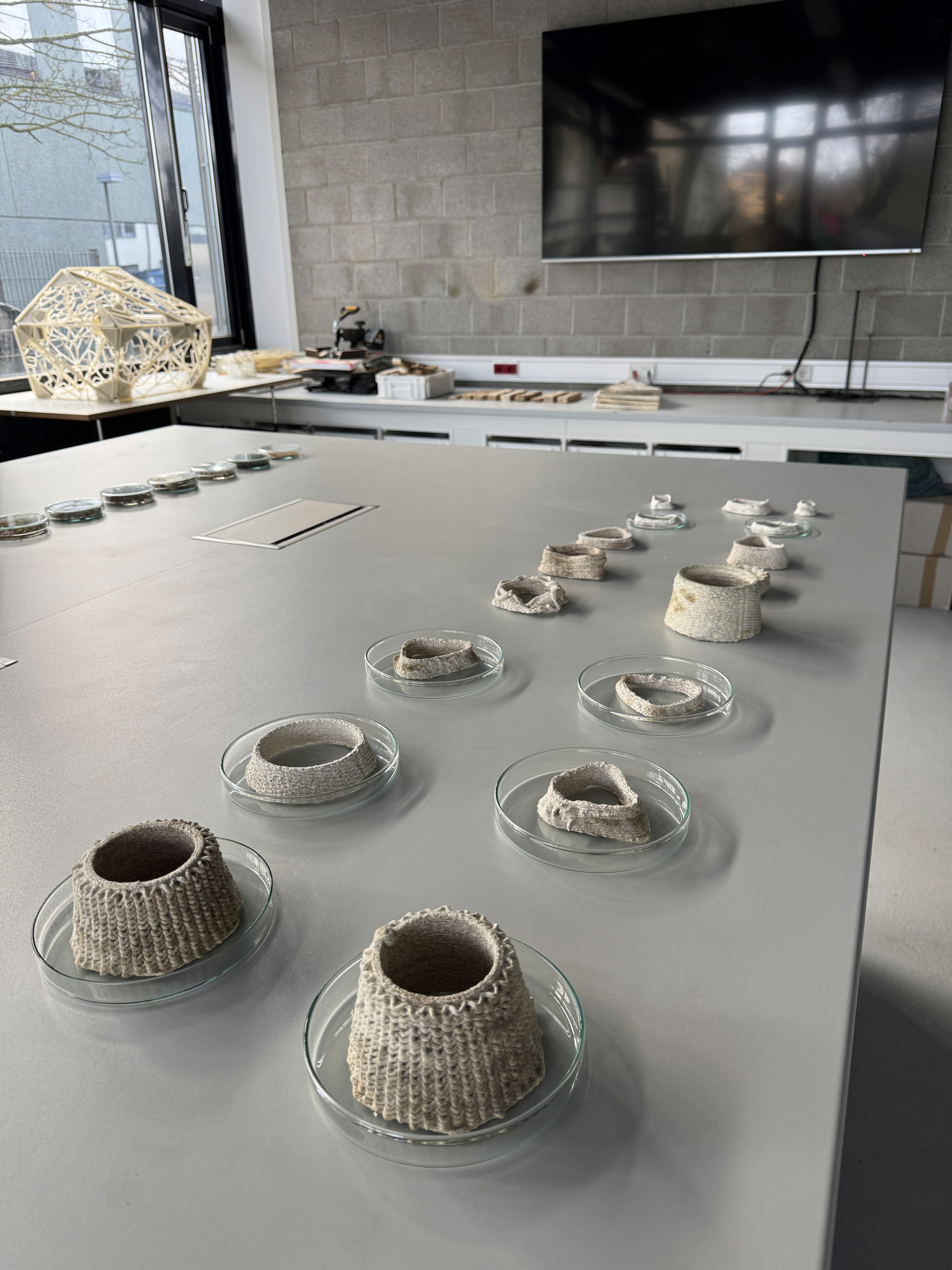 "Mycelium as a Design and Material System Developing a printable, living mycelium paste for extrusion-based additive manufacturing" - This project explores mycelium as a living material system for extrusion-based additive manufacturing. As part of my Master’s thesis, I developed an extrudable, biologically active mycelium paste and a corresponding printing and processing approach. The work investigates how material composition, process parameters, and time-dependent behavior (e.g., drying, growth, consolidation) influence printability and structural stability. Rather than treating 3D printing as a purely reproductive tool, it is used as an experimental interface to reveal material behavior, process limits, and design opportunities.
